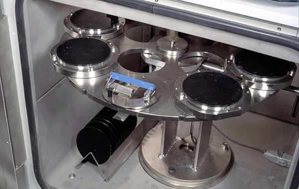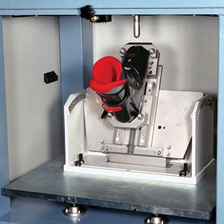 Для ударных испытаний с температурным воздействием копры серии 9300 оснащаются термокамерами с диапазоном -70…+150оС. Удар по образцу осуществляется через небольшое отверстие, которое открывается перед сбросом груза и закрывается после его подъема. В камеру могут устанавливаться различные приспособления с автоматическим или ручным подающим устройством, обеспечивающую загрузку до 10 образцов и приспособлений одновременно.