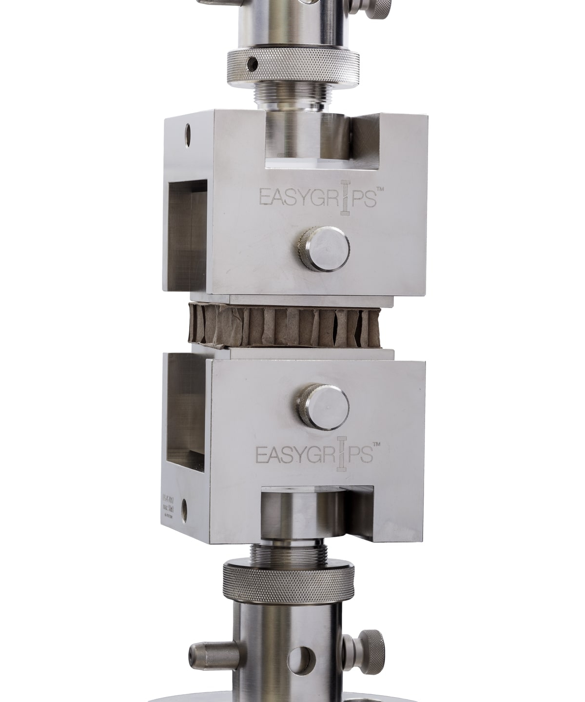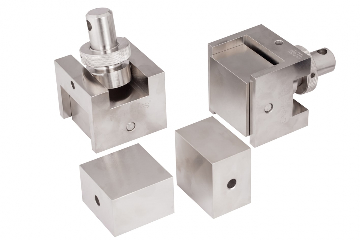 Оснастка EasyGrips™, EG-K-7017, предназначена для определения предела прочности на растяжение перпендикулярно к плоскости "сэндвич"-конструкций согласно требованиям ГОСТ 56783-2019, ASTM С297. Приспособление состоит из двух шарнирных адаптеров, к которым фиксируются контактные блоки, с приклеенными сотовыми конструкциями. Благодаря шарнирным адаптерам обеспечивается выравнивание цепочки нагружения для исключения перекоса при испытании. Для повышения эффективности испытаний оснастка комплектуется пятью парами контактных блоков, чтобы вы могли провести испытаний всей серии образцов сразу.