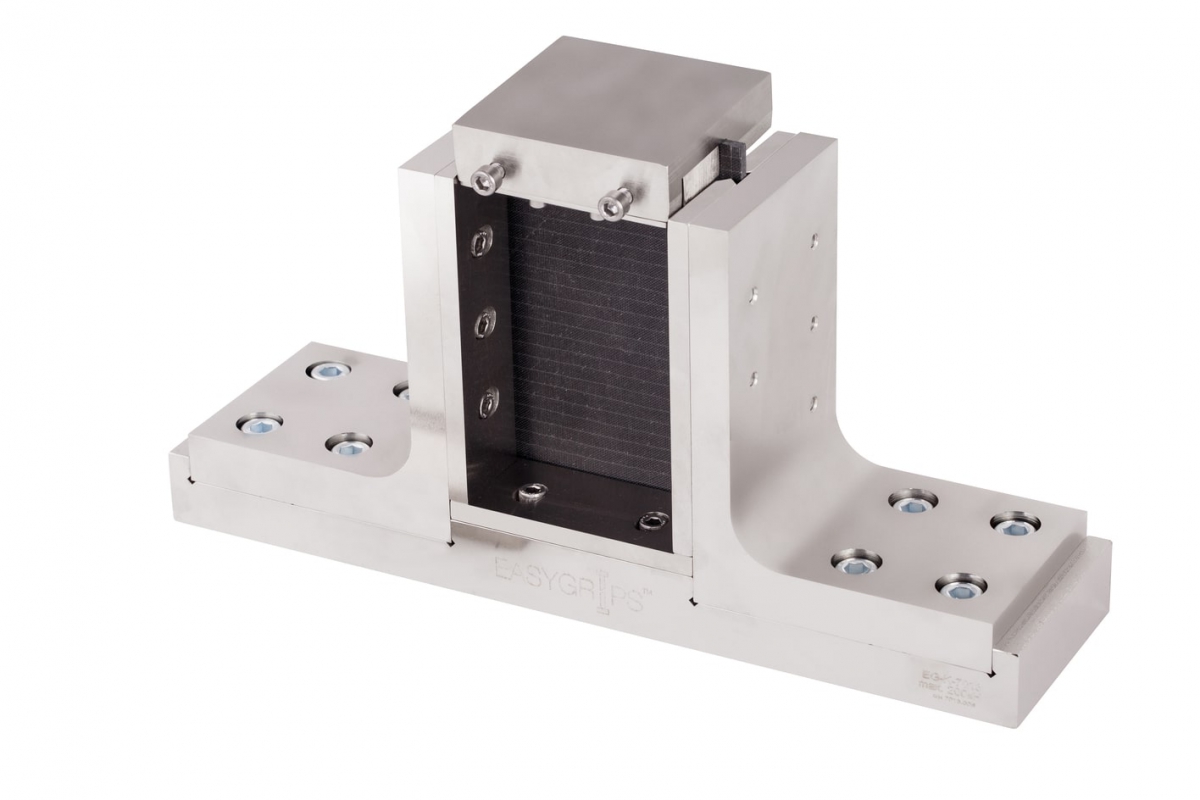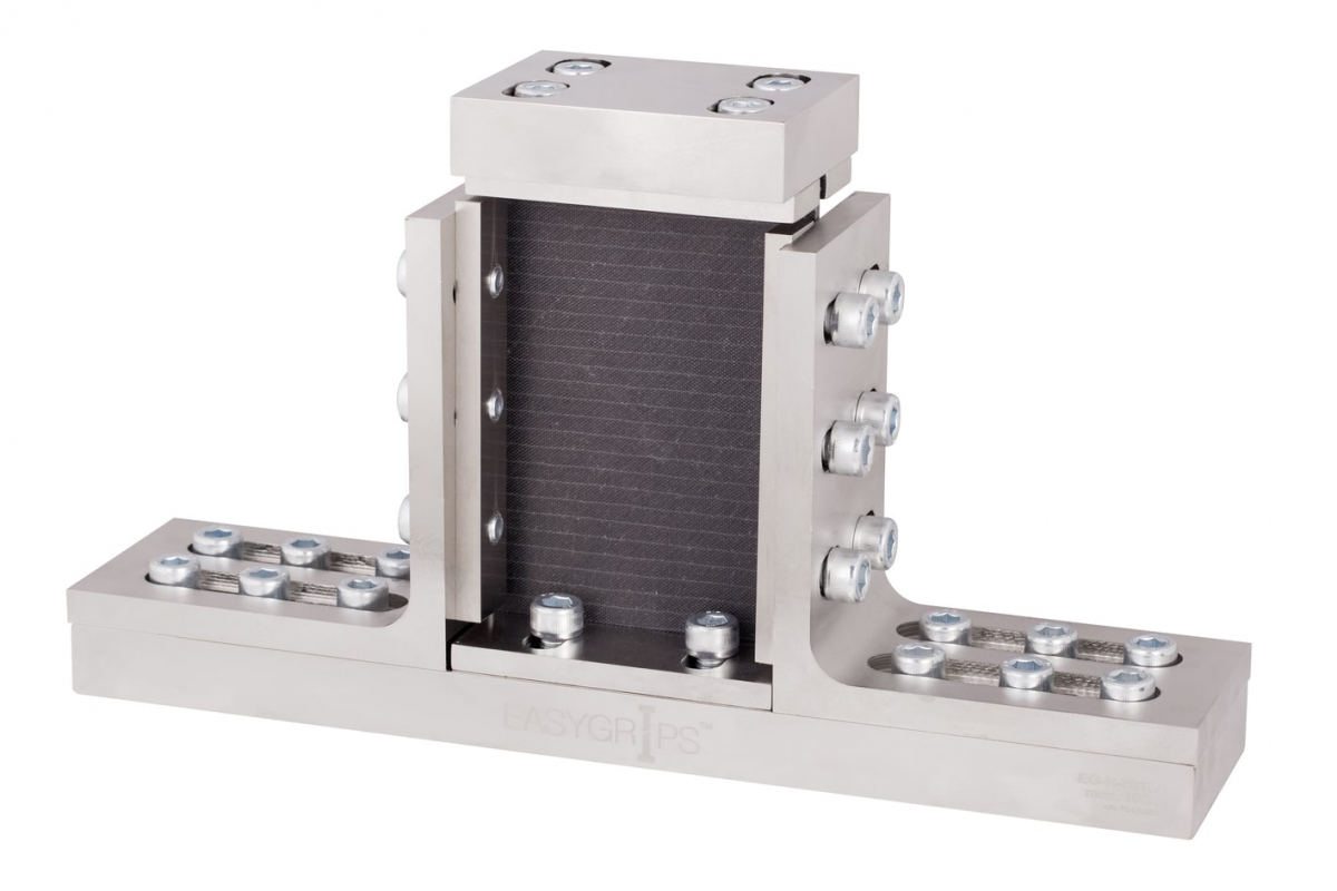 Оснастка EasyGrips™, EG-K-7013, предназначена для определения прочностных характеристик композитных панелей, армированных углеродными и другими волокнами с имеющимся ударным повреждением - сжатие после удара (CAI, Compression After Impact Test). Испытания проводятся согласно требованиям стандартов ASTM D7137 и ГОСТ 33495-2015 методом статического сжатия.
