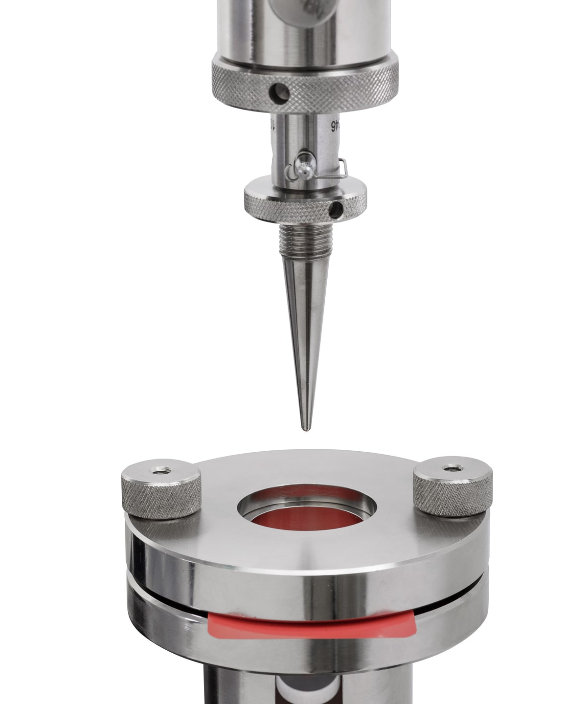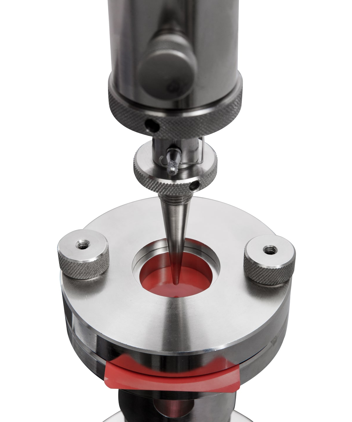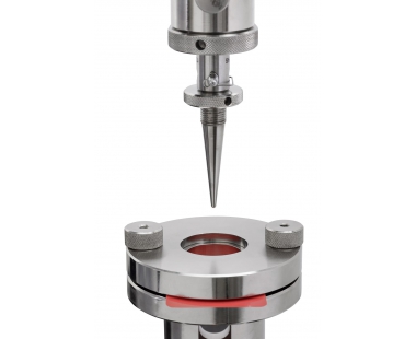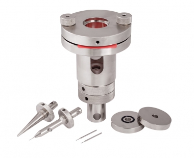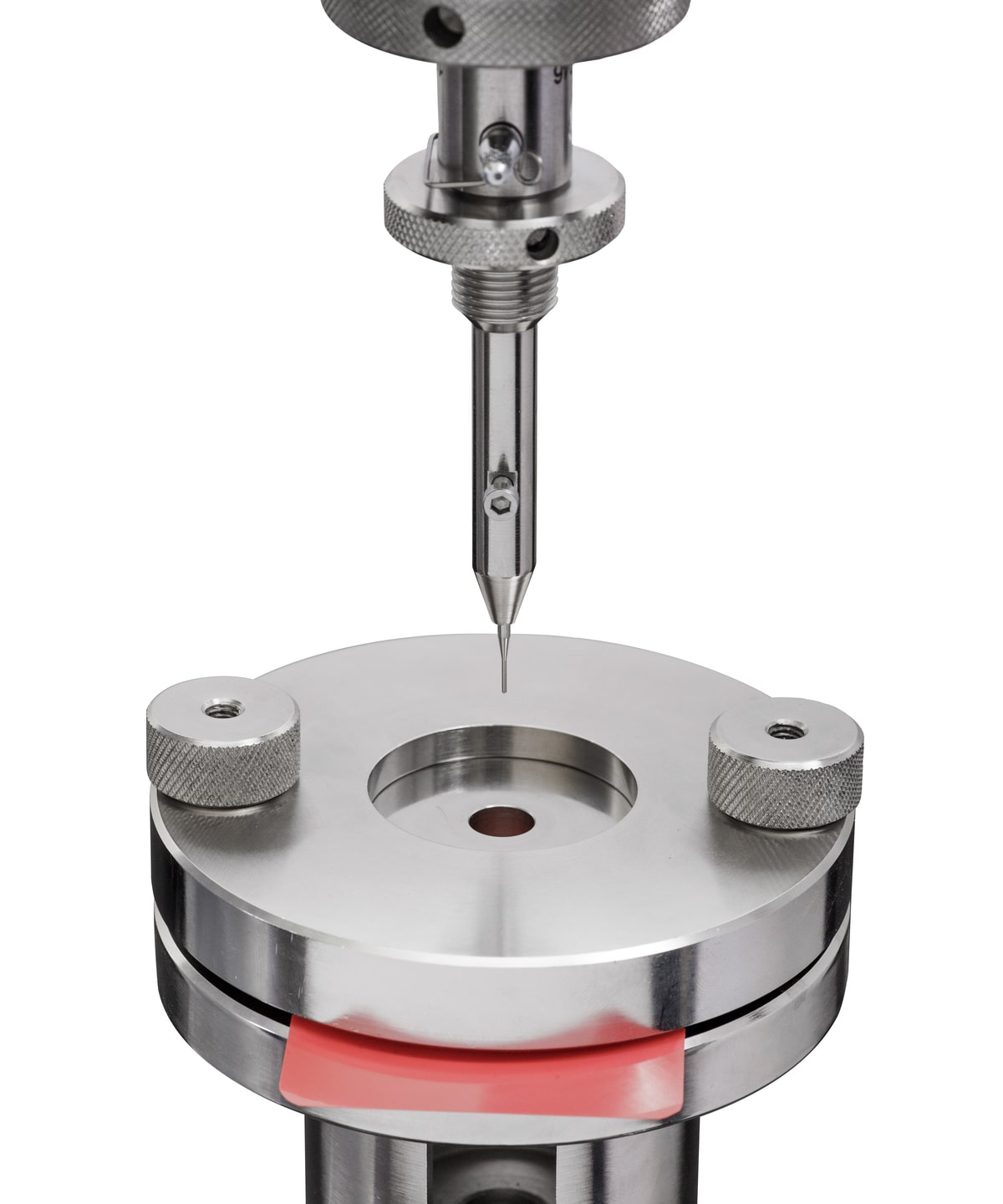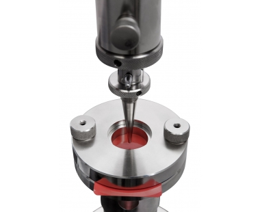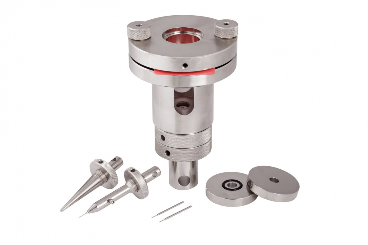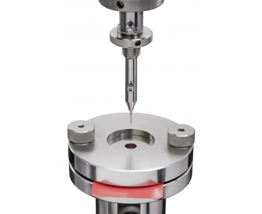 • Универсальная конструкция со сменными опорами диаметром 1 мм и 4 мм или 4 и 10 мм и давящей оправкой диаметром 10 мм.